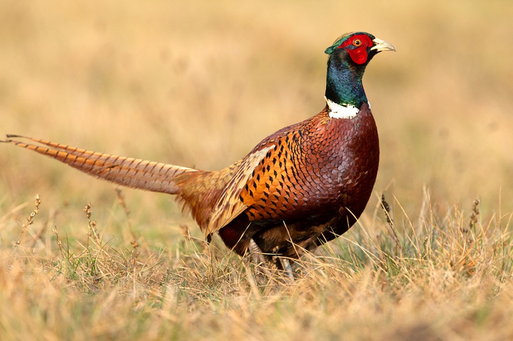 Bažant obecný je velký, pestře zbarvený pták z řádu hrabavých. Ze svého původního areálu v Asii byl člověkem uměle vysazen do Evropy. V naší honitbě jde často zahlédnou na polích a loukách.